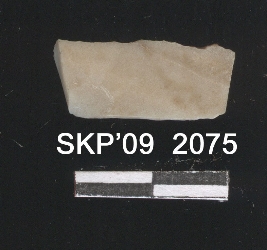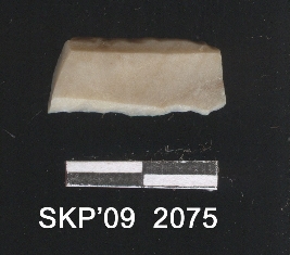 | Description / विवरण | This is a chert blade fragment with rectangular cross section blunt denticulated sides and slaked ridges. |