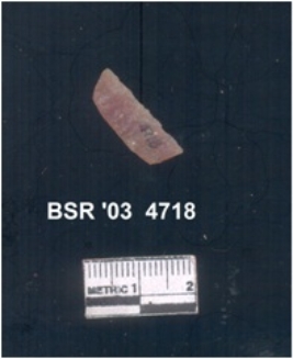 | Description / विवरण | A chert trapezoid blade with one edge with retouched and thick and the other with the thin and sharp |
