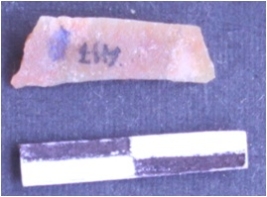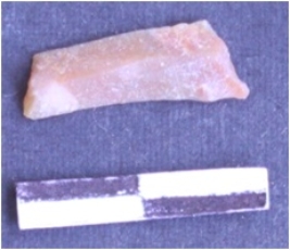 | Description / विवरण | Pen Knife Blade, made on Chert. Use-wear marks along the lateral edge, prepared platform along the proximal end. |