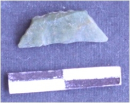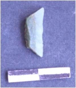 | Description / विवरण | A moss agate blade with triangular section. Both the edges have use marks |