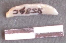| Description / विवरण | Fragment of Backed Blade, made on chert. Triangular in cross section, backed along at one edge and retouches along at the other working edge. |