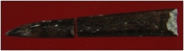 | Description / विवरण | Trench XB 2, Qdt 2, layer 2, depth 0-12 cms It s a broken blade made of bone. Surface is smooth with blackish appearance. |