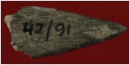 | Description / विवरण | Trench WC 3, Qdt 4, SH, depth 30 cm It is a broken point made of bone. Shape is triangular and surface is rough with dusty appearance. |