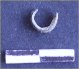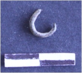| Description / विवरण | It is a copper fishing hook, the fragment is curved. The hook is not completely corroded, soil pointed at one end. |