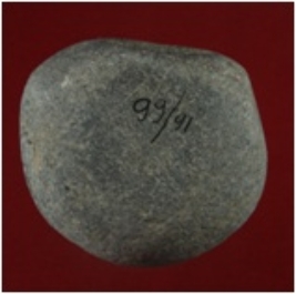 | Description / विवरण | Trench WB 3, Qdt 1, layer 1, depth 20 cm It is a weight made of stone. Shape is almost circular and surface is rough with grey appearance. |