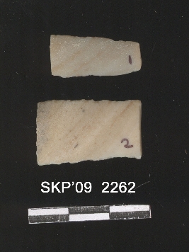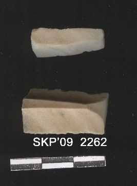 | Description / विवरण | Chert blade broken ends with trapezium cross sections, denticulated lateral margins. |
