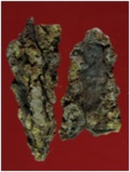 | Description / विवरण | Trench XD 3, Qdt 1, pit 1 SB SH, layer 4, depth 60 cm It is an arrow head, broken into two pieces, made of iron. It is badly corroded and deformed. |