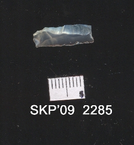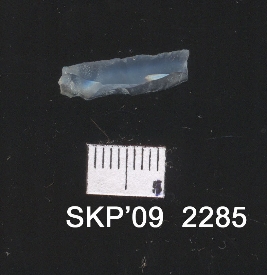 | Description / विवरण | This is a small chert blade transparent, white in color flaked, triangular cross section at one end, bulb of percussion on the other. |