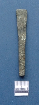 | Description / विवरण | IIt is a copper chisel. It is long and broken and is rectangular in shape. The working edge is flat and sharp. |