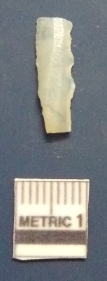 | Description / विवरण | It is a blade fragment. It is rectangular in shape. The ridges are clearly seen on the dorsal surface, while the ventral surface is plain. The sides are sharp rectangular. |