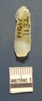 | Description / विवरण | It is a blade fragment. The ridges are clearly seen on the dorsal surface. The sides are sharp and retouched. The ventral surface is plain. Yellowish in color. |