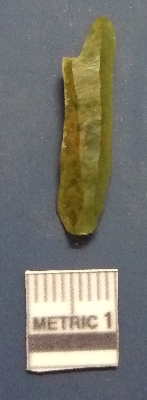 | Description / विवरण | It is a blade fragment. The ridges are clearly seen on the dorsal surface. The sides are sharp and retouched. The ventral surface is plain. The bulb of percussion can be clearly seen on the ventral surface. |