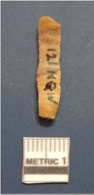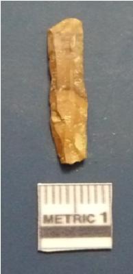 | Description / विवरण | The chert object. The ridges are clearly seen in the surface. The ventral surface is plain. The bulb of percussion is seen on the ventral surface. The sides are sharp and retouched. |