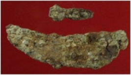 | Description / विवरण | Trench XF 5, Qdt 3, Layer 1, depth 30 cm These are two pieces of broken sickle, made of iron. Blade is curved and pointed and its surface is uneven and badly corroded. Edge is thin but not so sharp now because of its poor condition. A separate nail is given with it. |