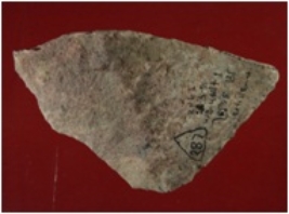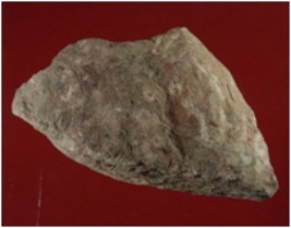 | Description / विवरण | Trench WB 4, Qdt 1,pit 8 SB layer 2, depth 90-115 It is a broken grinder made of stone. Shape is triangular but uneven. Chipping and flaking on the surface. Appearance is reddish brown. |