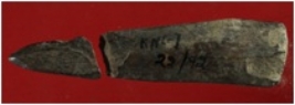 | Description / विवरण | Trench WA 2, Qdt 1, layer 3 It is a bone point. Broken into two pieces. One end is pointed. Surface is smooth and colour is brownish. |