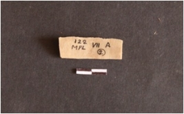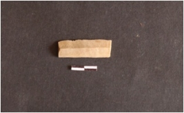 | Description / विवरण | Chert blade fragment has a ridge on dorsal side, broken from both ends, use-wear marks on edges and triangular cross-section. |