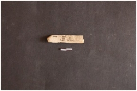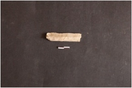 | Description / विवरण | Chert blade fragment has two ridges on dorsal side, striking platform, broken from distal end trapezoidal cross-section and use-wear marks on edges. |