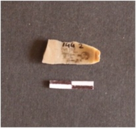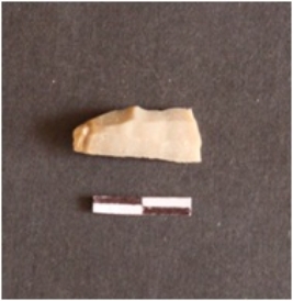 | Description / विवरण | Chert blade fragment has two ridges on dorsal side, broken from both ends, retouches and use-wear marks on edges. Trapezoidal cross-section. |
