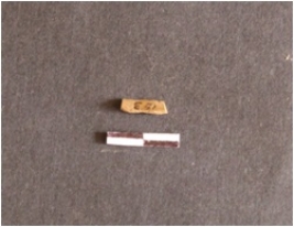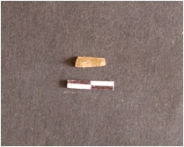 | Description / विवरण | Chert blunted blade fragment has a ridge on dorsal side, striking platform, broken from distal end and use-wear marks on one edge. |