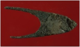 | Description / विवरण | Trench XD 3, Qdt 4, layer 6, depth 10-26 cms. It s a arrow head made of copper. Surface is rough and chipped off. Patina is present. |