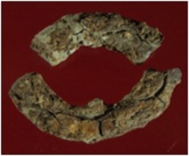 | Description / विवरण | Trench XF 3, Qdt 3, layer 1, depth 20 cm It is an iron spear head, broken into two pieces. Badly deformed and corroded. |