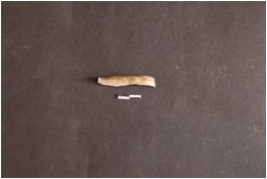 | Description / विवरण | Chert blade has two ridges on dorsal side, striking platform, bulb on ventral side use-wear marks on edges and roughly trapezoidal cross-section. |