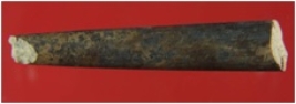 | Description / विवरण | Trench XD 3, Qdt 4, layer 7, depth 26-40 cm It is a point made of bone. Tip is broken and it seems that it may be a part of stylus. Surface is rough with dark brown appearance. |