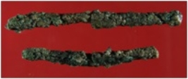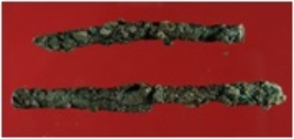 | Description / विवरण | Trench XD 3, Qdt 4, pit 2 S B S H, depth 0-40 cm It is a rod made of copper, broken into two pieces. Badly corroded. |