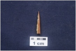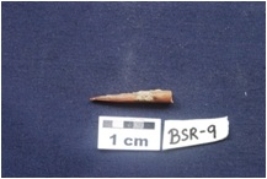 | Description / विवरण | A pointed end with a natural groove. It is charred and with circular cross section. |