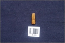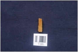 | Description / विवरण | Fragment of Blade, Triangular cross-section, Both the ends are broken, Retouches along at a one edge. |