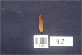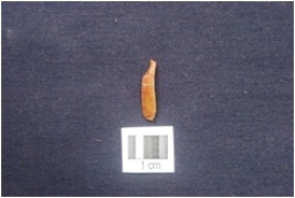 | Description / विवरण | A chert blade has two ridges on dorsal side, striking platform bulb with errailure on dorsal side, pointed along at distal end and sharp edges. |