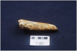 | Description / विवरण | Point with both the ends broken with a circular cross section. One end is thinner than the other. It is slightly encrusted. |