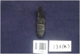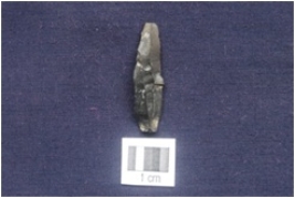 | Description / विवरण | Fragment of Blade, Distal end broken, Triangular cross-section, Bulb of percussion on the ventral surface, Use wear marks along at both the sides. |