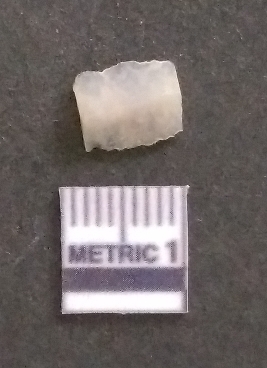 | Description / विवरण | This is a fragment of chalcedony stone blade, broken. Flaked and ridges with denticulated margin, bulb of percussion seen on the ventral side. Bulb of percussion seen with striking platform. |