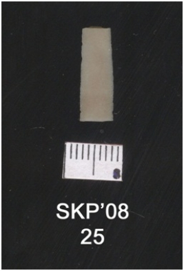 | Description / विवरण | It s a thin chert blade. Slightly translucent, prominent lateral margins, with removal of flake scar on the surface. No used ware marks on them. |