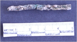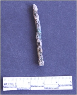 | Description / विवरण | It is a copper rod fragment, completely corroded. Patination on the surface. elongated in shape. |