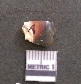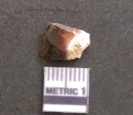 | Description / विवरण | Flat shaped carnelian blade with calcified cortex at one corner, flake scars seen, bulb of percussion seen with sharp edges. |