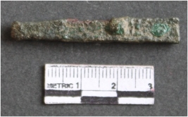 | Description / विवरण | It is a copper chisel, with partly corroded, elongated in shape with flat ends. Squarish in section greenish brown in color. |