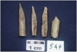 | Description / विवरण | Four splinter out of which one is definitely faceted from a pointed tip. They are scarred. |