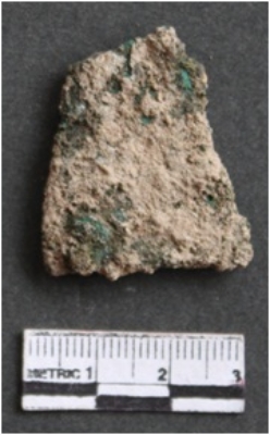 | Description / विवरण | It is a corroded copper knife fragment broken from one side. Parinated with soil impurities on the surface. Greenish brown in color. |