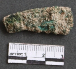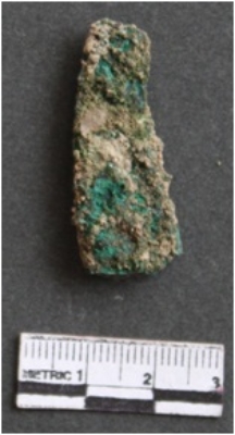 | Description / विवरण | It is a corroded copper. Blade fragment. Broken from both the ends. Greenish brown in color. |