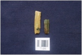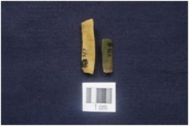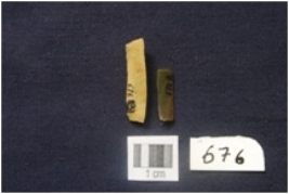 | Description / विवरण | a Fragment of Blade, Broken at one end, Triangular cross-section, Use wear marks along at a one edge and sharp at the other edge. b Fragment of Blade, Broken at one end, Ridges on the dorsal surface, Use wear marks along at both the workingedges. |