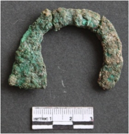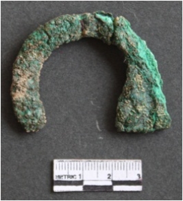 | Description / विवरण | It is a corroded copper hook. It is in a shape of an horse. Curved in a U shape. Greenish brown in color. Patinated with soil impurities on the surface. |