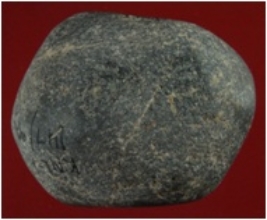 | Description / विवरण | Trench WC 3, Qdt 3, section 1-5, depth 130 cm It is a weight made of stone. Shape is uneven and surface is rough and greyish. |