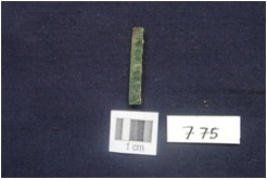 | Description / विवरण | Fragment of Backed Blade, Both the ends are broken, triangular cross-section, Backed along at a one edge and sharp edge on the other side. |