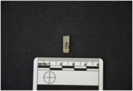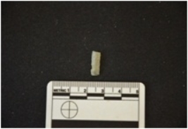 | Description / विवरण | Fragment of moss agate blade has a midridge on dorsal side, broken from both ends, use-wear marks along one cutting edge and triangular cross-section. |