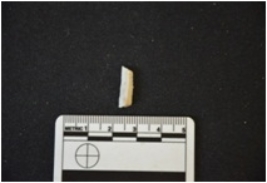 | Description / विवरण | Fragment of chert backed blade has two ridges on dorsal side, broken from both ends, backed along at one end, use-wear marks in other edge and trapezoid cross-section. |
