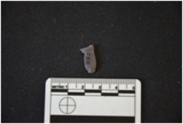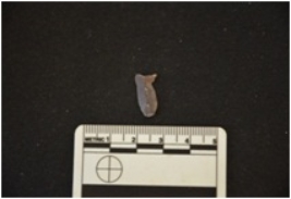 | Description / विवरण | Chert blade flake has two ridges on dorsal side, striking platform, bulb on ventral side, broken from distal end, use-wear on cutting edges and trapezoidal cross-section. |
