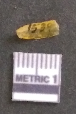 | Description / विवरण | This is a chalcedony stone blade fragment, broken at both ends. Flaked and ridged with sharp margins. |